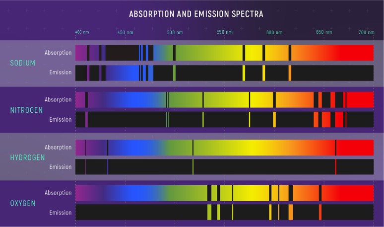 The spectra of collected light from space can be compared to the fingerprint spectra of elements measured in the lab to identify and quantify ISM makeup.