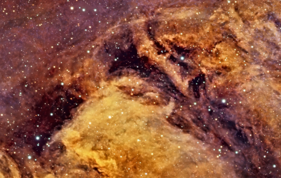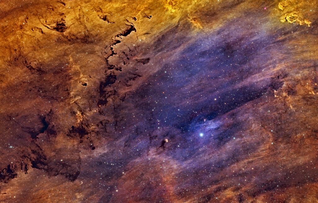 Dark nebular images, such as this give us a glimpse of the dynamics at play when molecular regions flows against neutral atomic media, often resulting in star formation – outside stellar nurseries. The images reveal friction as a major player in the cast of forces, with turbulence and multi-phase flow phenomenon apparent in the dust patterns.